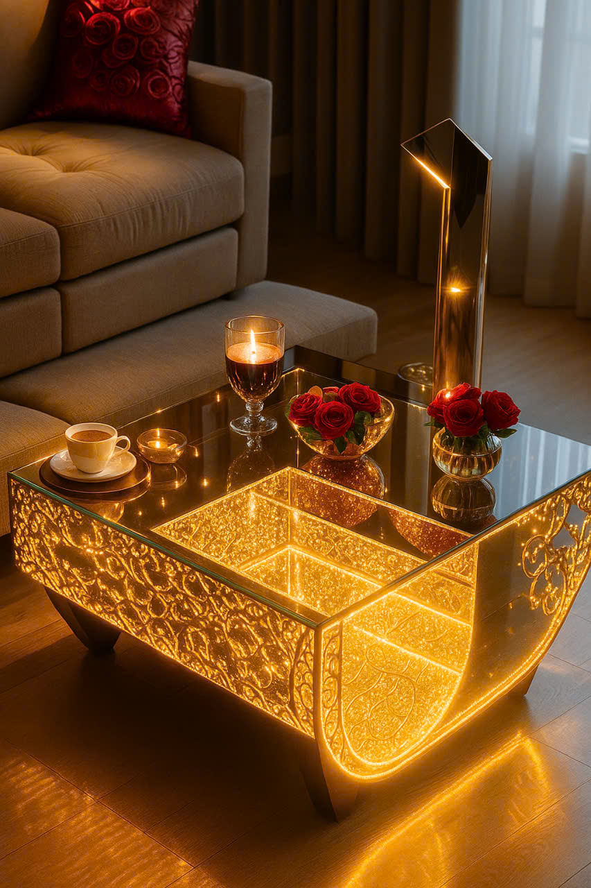 💫 BÀN TRÀ LED NGHỆ THUẬT ÁNH VÀNG LUXURY CITYBUILDING – PHONG CÁCH HIỆN ĐẠI, ĐẲNG CẤP, SẢN XUẤT THEO YÊU CẦU TẠI HÀ NỘI & TPHCM.