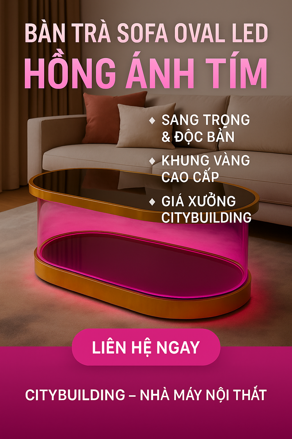 🌟 BÀN TRÀ SOFA OVAL LED HỒNG ÁNH TÍM – TUYỆT TÁC NỘI THẤT NGHỆ THUẬT 2025 | CITYBUILDING