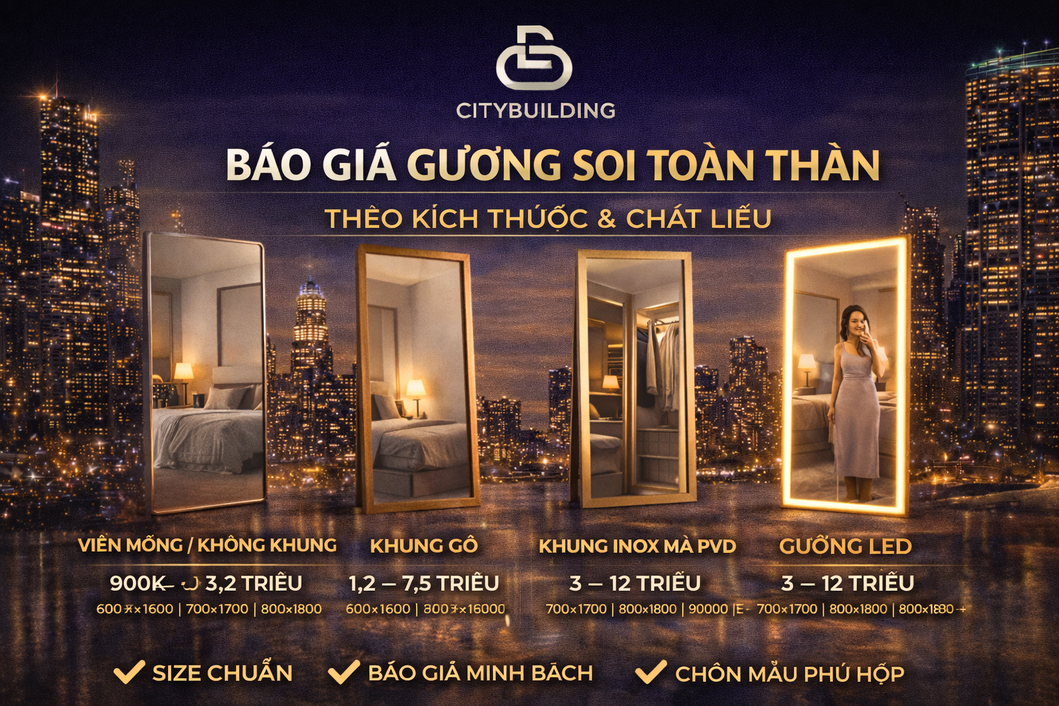 🔹 BÁO GIÁ GƯƠNG SOI TOÀN THÂN THEO KÍCH THƯỚC & CHẤT LIỆU | CITYBUILDING