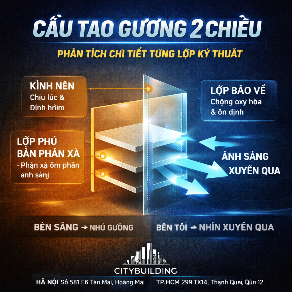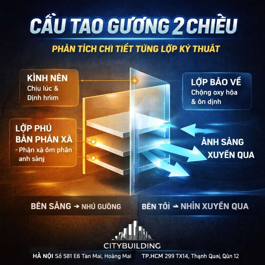 💎 CẤU TẠO GƯƠNG 2 CHIỀU – PHÂN TÍCH CHI TIẾT TỪNG LỚP KỸ THUẬT