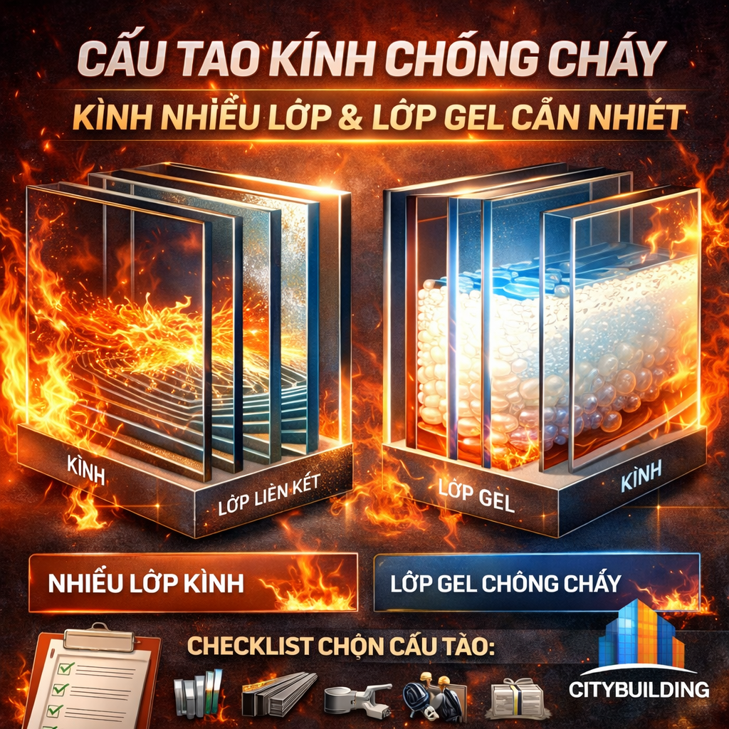 💎 Cấu tạo kính chống cháy: Kính nhiều lớp, lớp gel chống cháy, nguyên lý ngăn nhiệt & khói | Citybuilding
