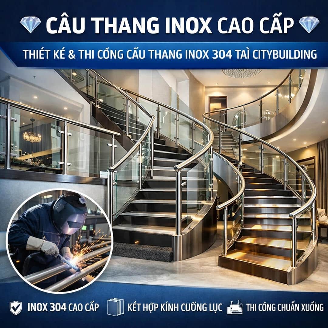 1️⃣ 💎 CẦU THANG INOX CAO CẤP – THIẾT KẾ & THI CÔNG CẦU THANG INOX 304 TẠI CITYBUILDING