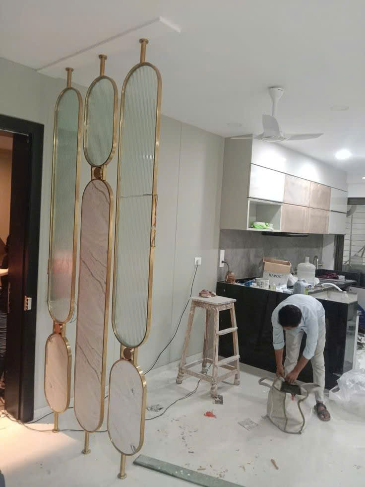 ✅ Thiết kế – gia công – lắp đặt vách ngăn phòng khách theo yêu cầu