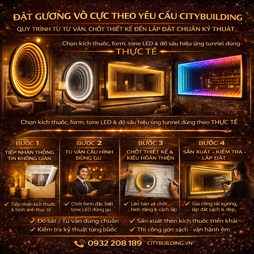 💎 6. QUY TRÌNH ĐẶT GƯƠNG VÔ CỰC THEO YÊU CẦU TẠI CITYBUILDING