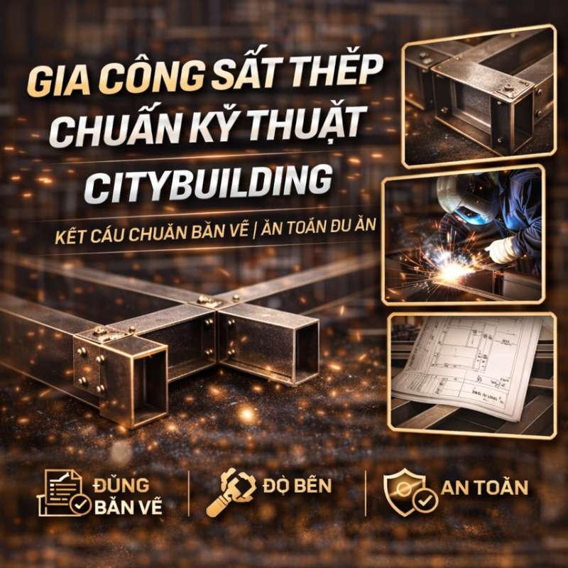 💎 Citybuilding chuyên gia công sắt thép chuẩn kỹ thuật theo bản vẽ: khung chịu lực, kết cấu thép dự án, khung sắt công trình. Đúng kích thước – mối hàn chắc – tải lực ổn định, tối ưu thi công và vận hành an toàn.