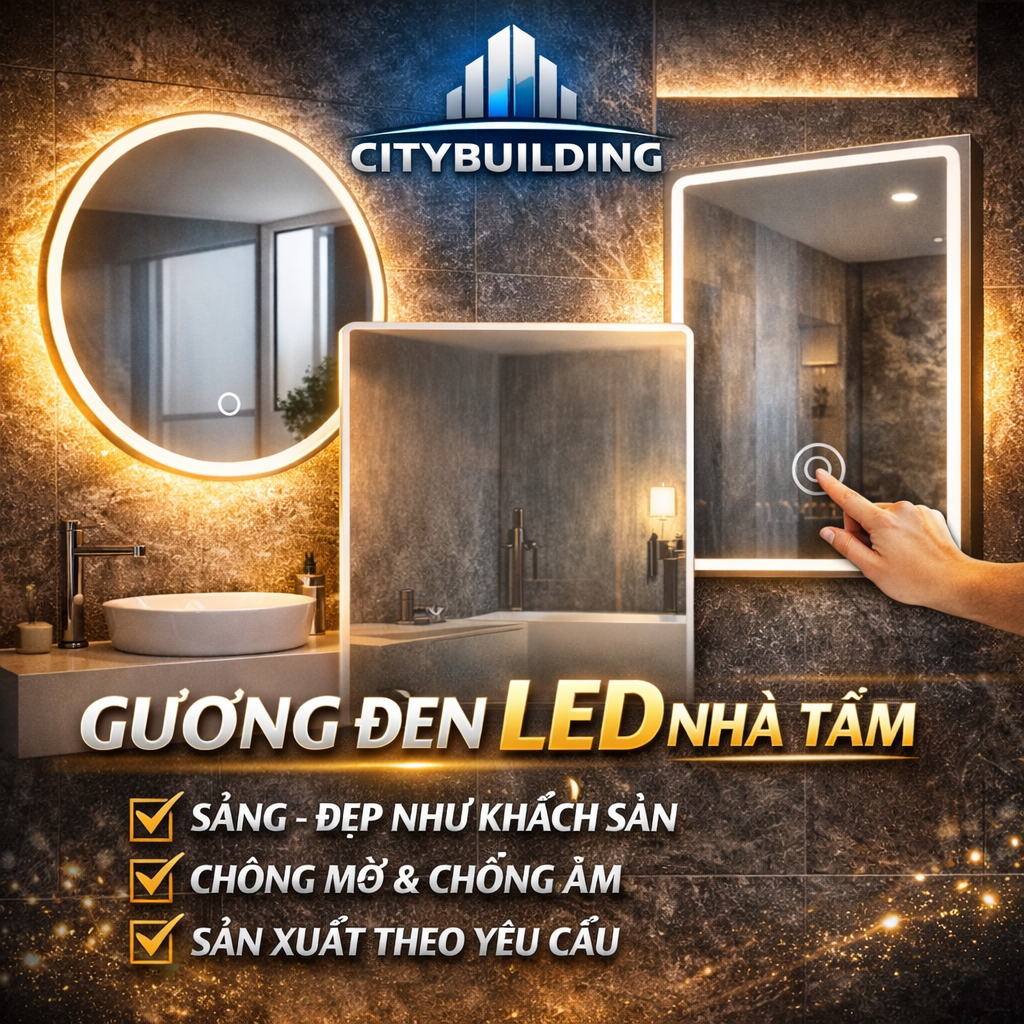 Citybuilding định vị gương LED nhà tắm không phải là “gương gắn đèn”, mà là giải pháp hoàn thiện phòng tắm theo chuẩn cao cấp: đẹp – bền – an toàn – đúng kỹ thuật.