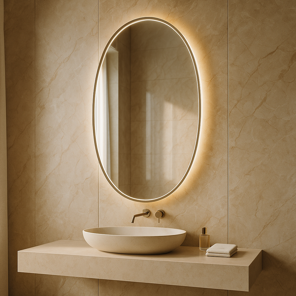 Gương LED là lựa chọn phổ biến tại Bình Mỹ nhờ tính tiện nghi và thẩm mỹ.