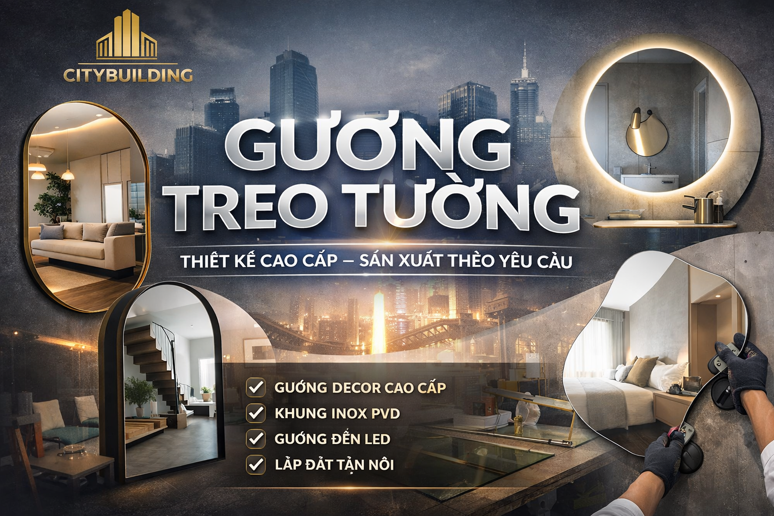 💎 GƯƠNG TREO TƯỜNG CITYBUILDING – SẢN XUẤT THEO YÊU CẦU, MẪU ĐẸP, BÁO GIÁ NHANH