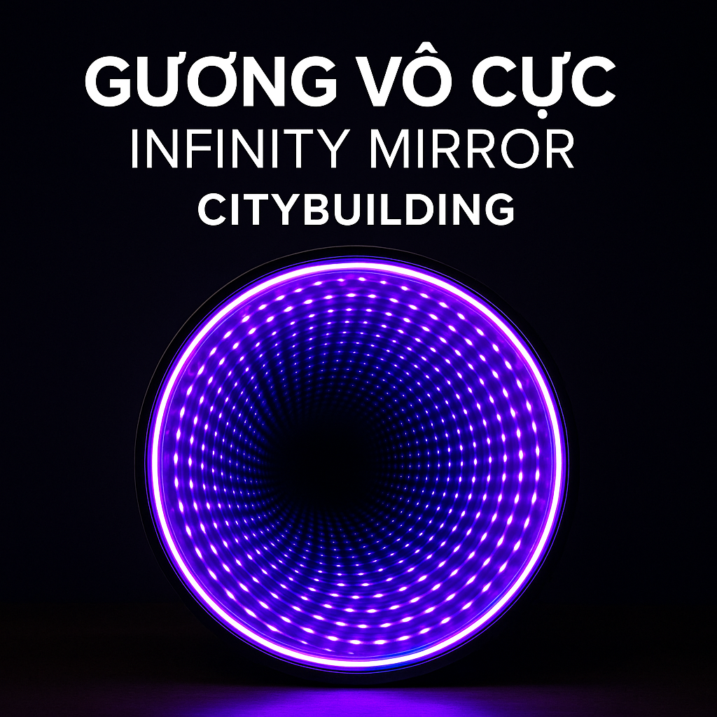 💎 Gương vô cực Citybuilding – hiệu ứng LED 3D tunnel – sản xuất theo yêu cầu. Nhà máy 4000m², CNC – mài – dán gương – LED RGB. 100 thợ giỏi 10+ năm kinh nghiệm. Báo giá gương vô cực mới nhất.