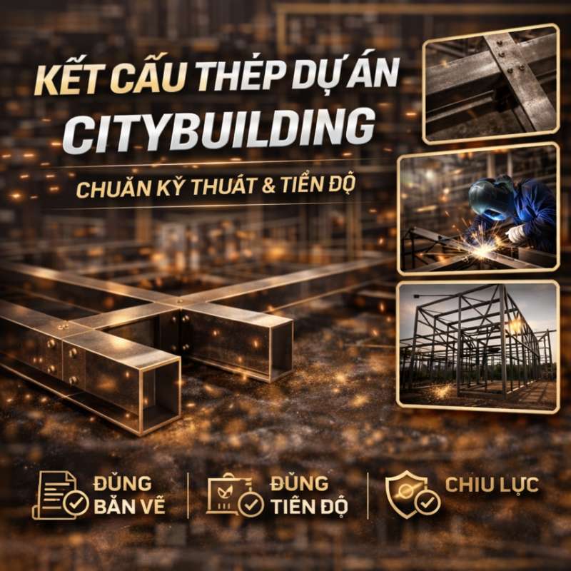 💎 Citybuilding nhận gia công kết cấu thép dự án theo bản vẽ: khung thép chịu lực, kết cấu thép công trình, tổ hợp – hàn – lắp đặt. Đúng kỹ thuật – đúng tải lực – đúng tiến độ, tối ưu thi công và an toàn vận hành.