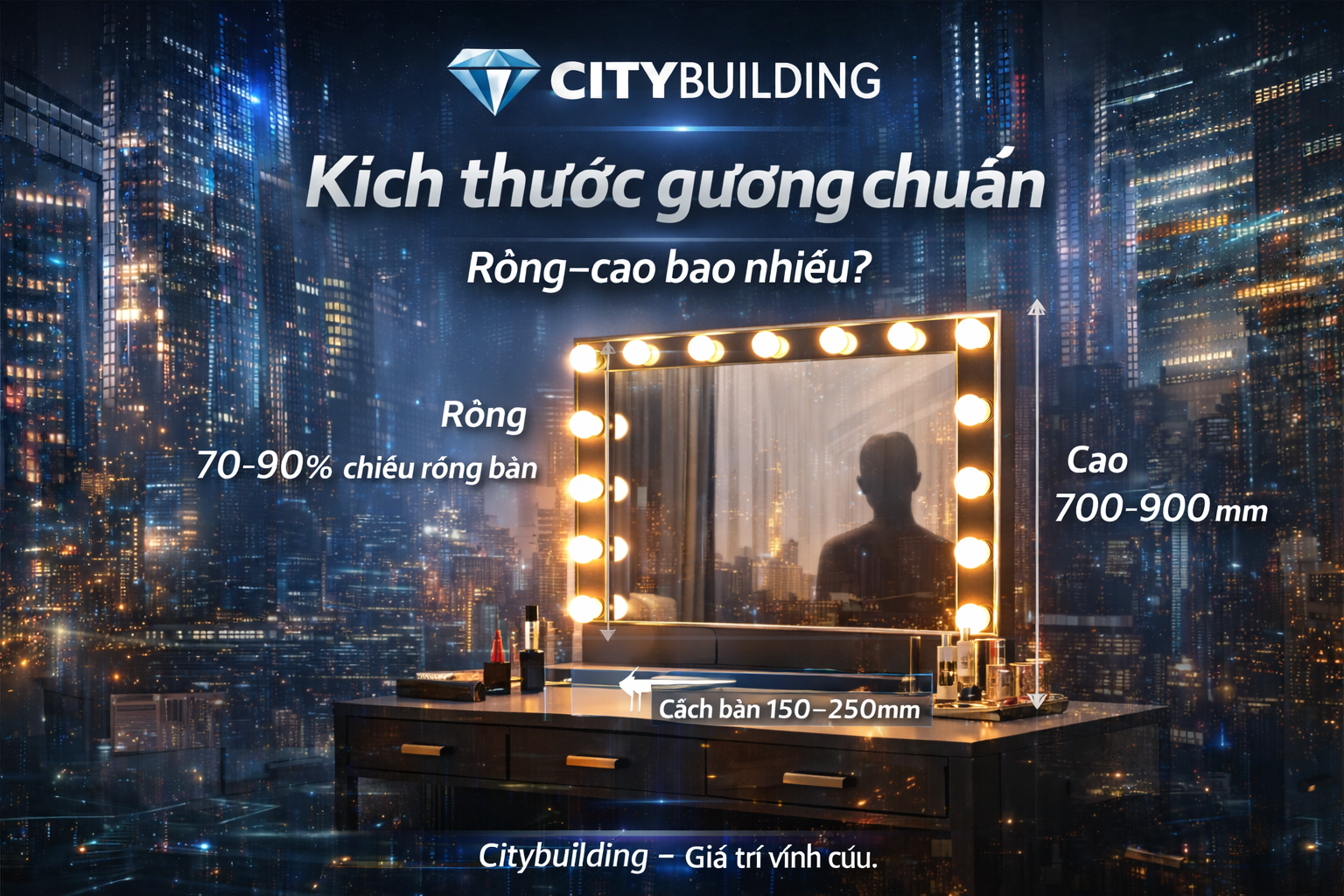 💎 Kích thước gương bàn trang điểm chuẩn: rộng–cao bao nhiêu là vừa? | Citybuilding