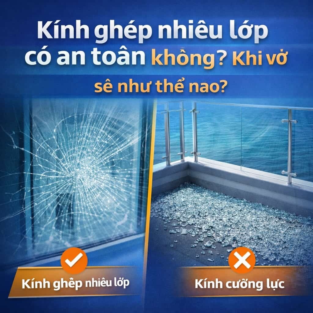 Bài viết này đi thẳng vào bản chất an toàn khi kính ghép nhiều lớp bị vỡ, không quảng cáo, không né nhược điểm.