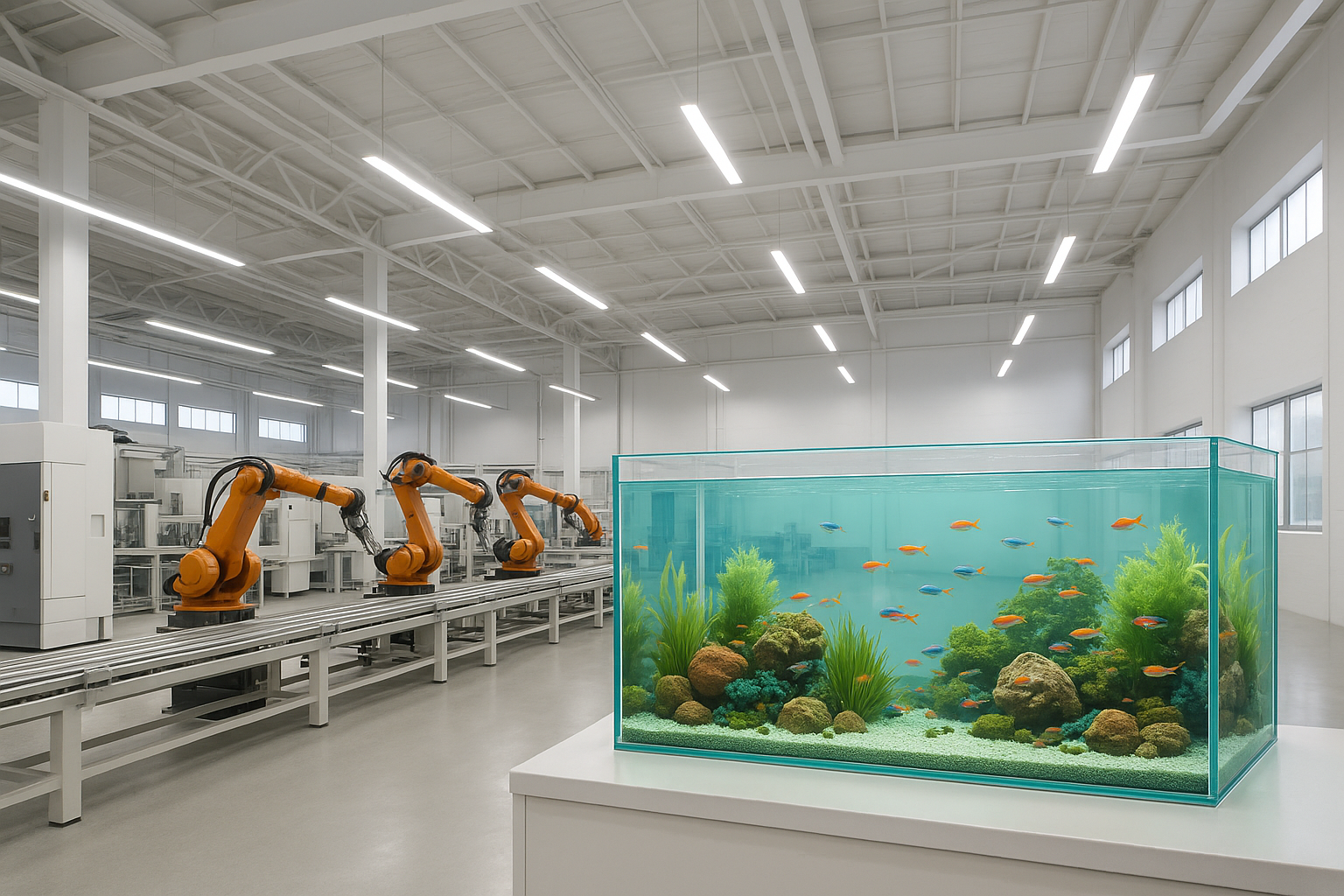 🌟 NHÀ MÁY SẢN XUẤT KÍNH SIÊU TRONG HỒ CÁ CITYBUILDING – PHƯỜNG TÂN SƠN