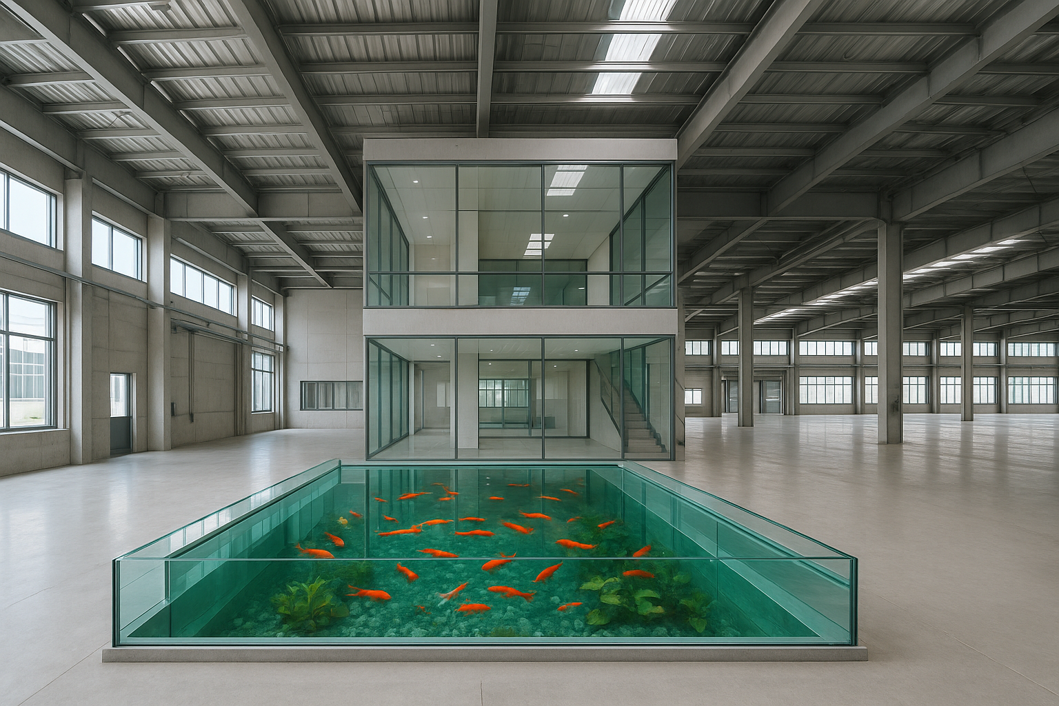 🌟 NHÀ MÁY SẢN XUẤT KÍNH SIÊU TRONG HỒ CÁ CITYBUILDING – XÃ NGHĨA THÀNH