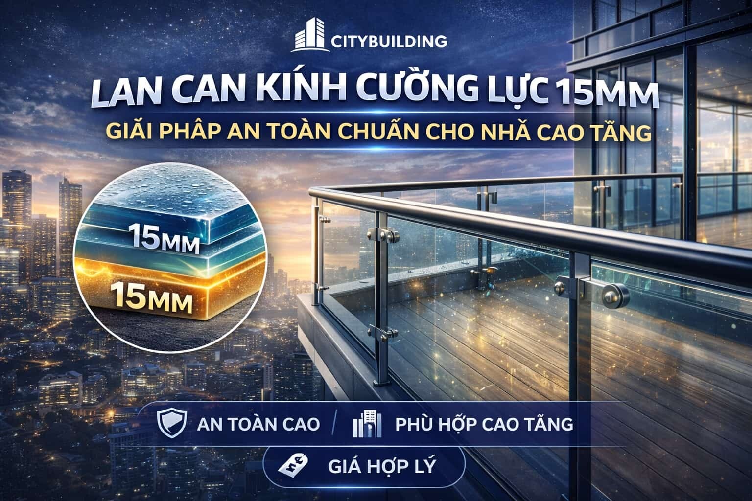 💎 LAN CAN KÍNH CƯỜNG LỰC 15MM – GIẢI PHÁP AN TOÀN CHUẨN CHO NHÀ CAO TẦNG