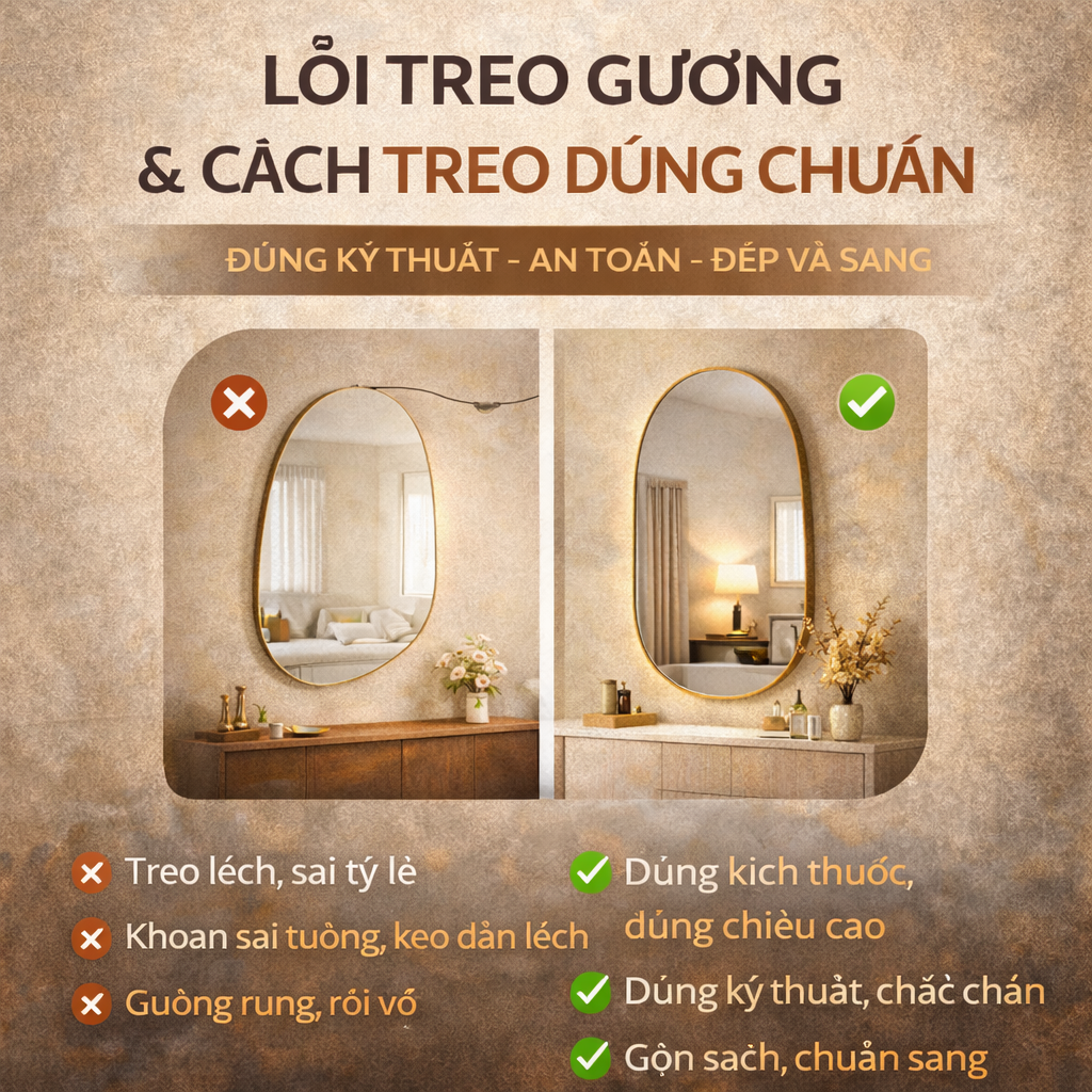 💎 LỖI THƯỜNG GẶP KHI TREO GƯƠNG TREO TƯỜNG & CÁCH TREO ĐÚNG CHUẨN AN TOÀN