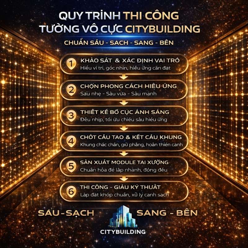 7️⃣ QUY TRÌNH THIẾT KẾ – SẢN XUẤT – THI CÔNG TƯỜNG VÔ CỰC CITYBUILDING