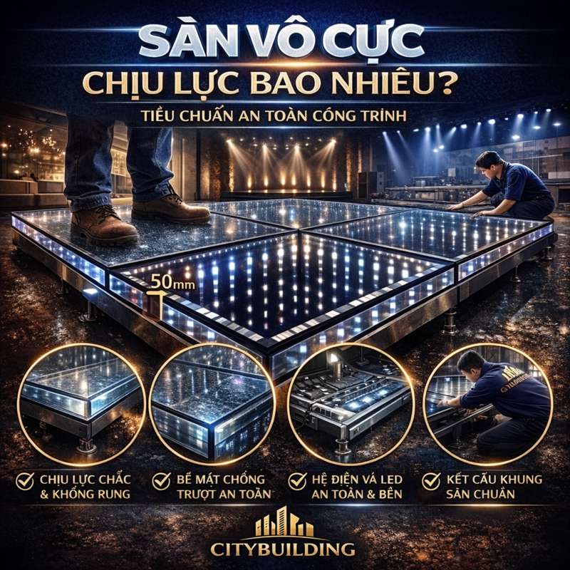 💎 Sàn vô cực chịu lực bao nhiêu phụ thuộc vào cấu hình kết cấu, vật liệu kính và mục đích sử dụng. Bài viết giúp bạn hiểu các yếu tố quyết định chịu lực, tiêu chuẩn an toàn khi thi công và cách Citybuilding thiết kế sàn vô cực theo công trình thực tế.