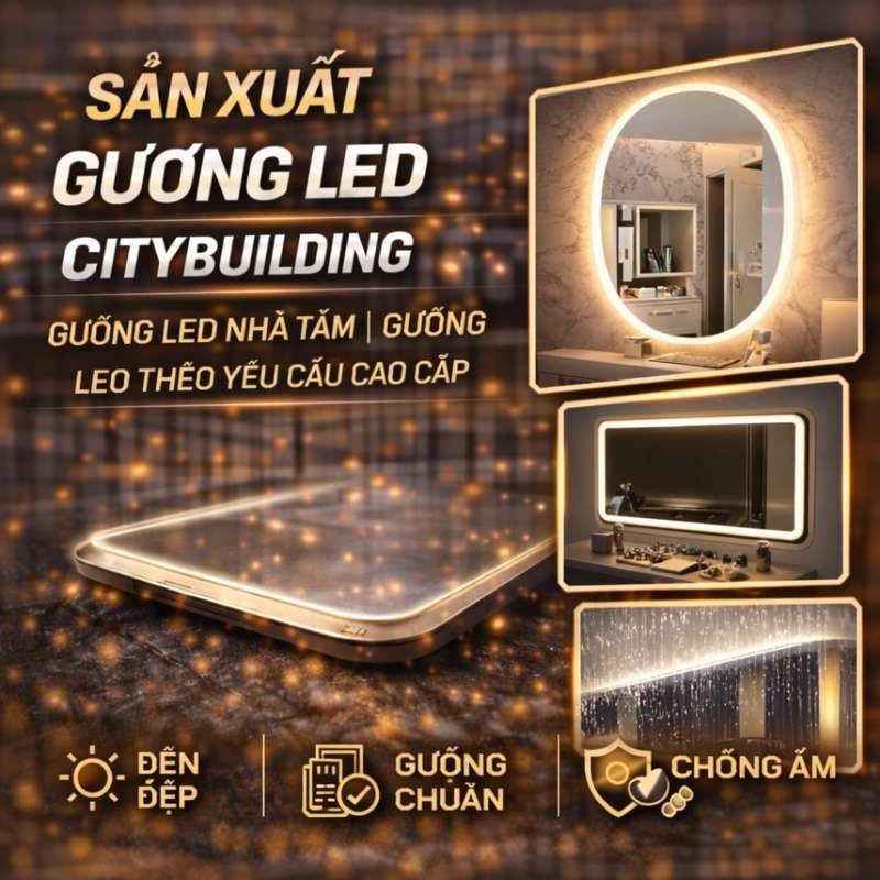 💎 Citybuilding chuyên sản xuất gương LED theo yêu cầu: gương LED nhà tắm, gương LED decor, gương LED dự án. Hoàn thiện bề mặt chuẩn – ánh sáng đẹp – chống ẩm tốt – lắp đặt chuẩn kỹ thuật, tối ưu cho nhà ở & công trình.