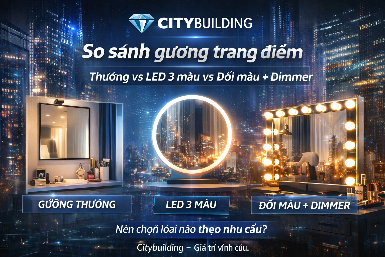 🔹 So sánh gương trang điểm: gương thường vs gương LED 3 màu vs gương dimmer | Citybuilding