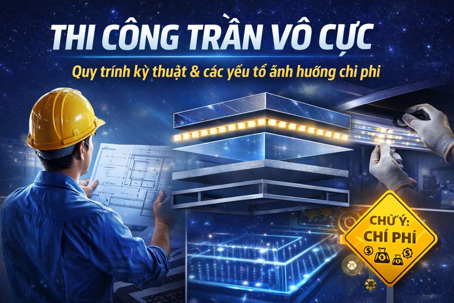 🔹 Thi công trần vô cực: quy trình, lưu ý kỹ thuật & các yếu tố ảnh hưởng chi phí
