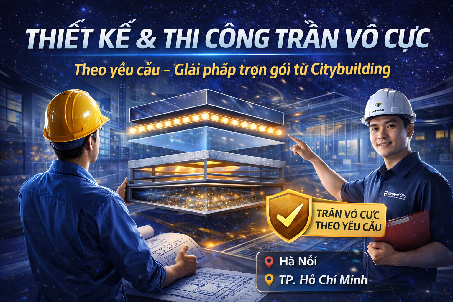 🔹 Thiết kế & thi công trần vô cực theo yêu cầu – Giải pháp trọn gói Citybuilding