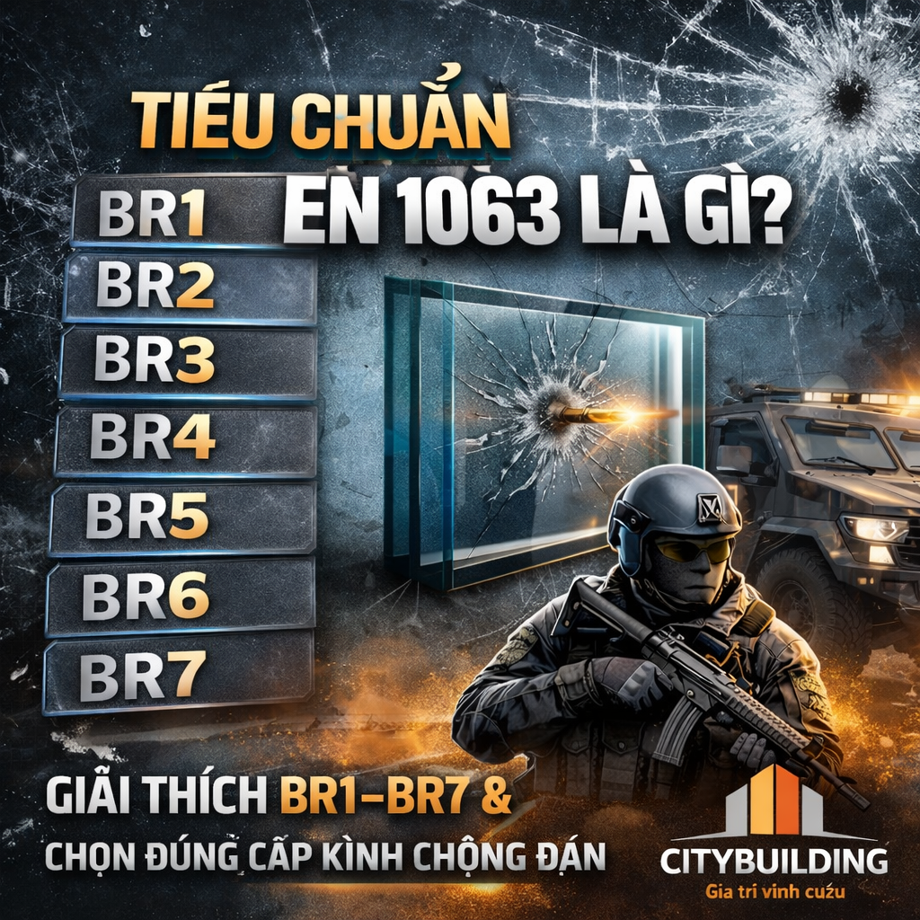 🔹 TIÊU CHUẨN EN 1063 LÀ GÌ GIẢI THÍCH BR1 BR7 VÀ CÁCH CHỌN CẤP KÍNH CHỐNG ĐẠN ĐÚNG NHU CẦU CITYBUILDING