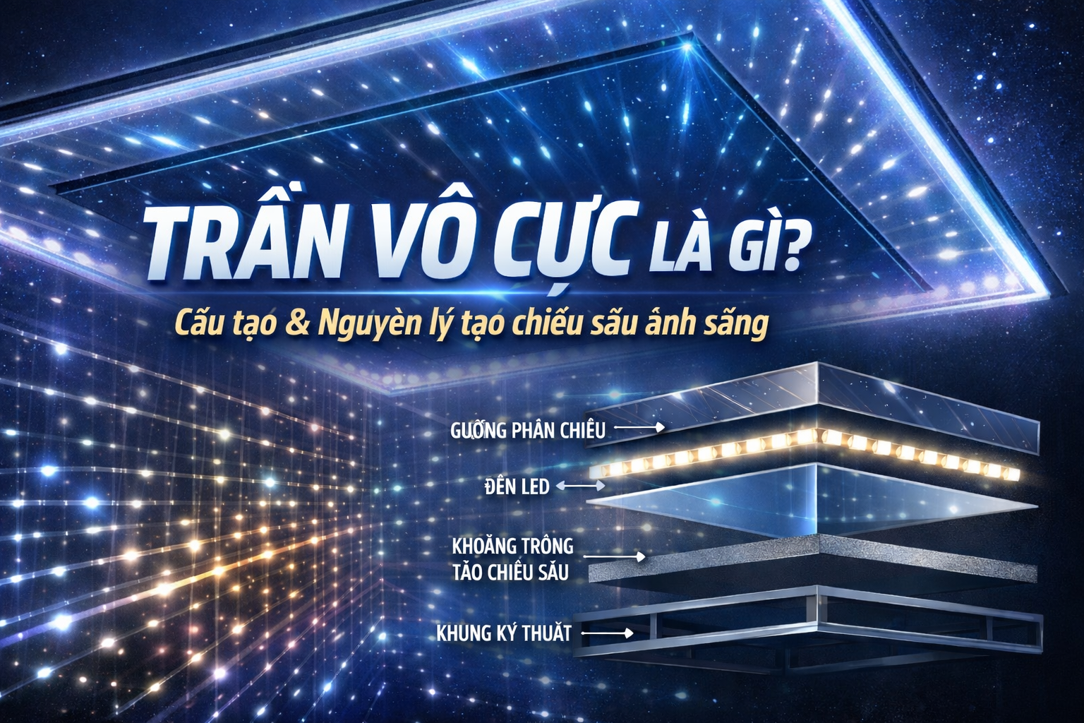 🔹 Trần vô cực là gì? Cấu tạo & nguyên lý tạo chiều sâu ánh sáng