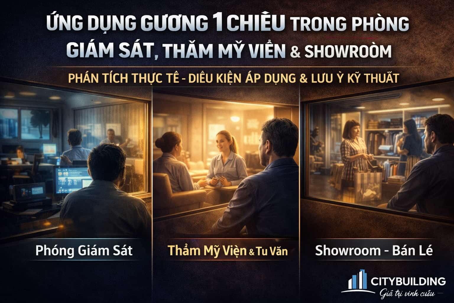 💎 ỨNG DỤNG GƯƠNG 1 CHIỀU TRONG PHÒNG GIÁM SÁT, THẨM MỸ VIỆN & SHOWROOM PHÂN TÍCH THỰC TẾ – ĐIỀU KIỆN ÁP DỤNG & LƯU Ý KỸ THUẬT