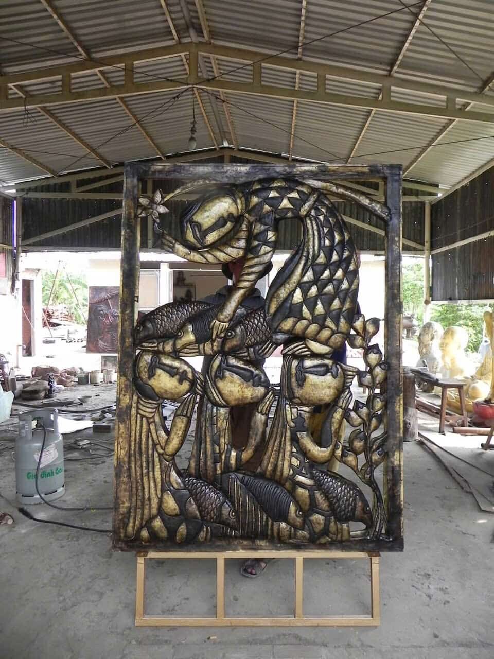 Đúc phù điêu đồng trang trí cho mảng tường, quầy lễ tân, sảnh chờ, hành lang, khu vực nhấn décor, giúp tạo điểm nhấn mang chiều sâu nghệ thuật và dấu ấn thẩm mỹ riêng.